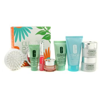 Bonus Travel Set: 1x 7 Day Scrub Cream Rinse Off Formula 30ml/1oz 1x Liquid Facial Soap Extra-Mild 15ml/0.5oz 1x Youth Surge SPF 15 Age Decelerating Moisturizer 15ml/0.5oz 1x Youth Surge Night Age Decelerating Night Moisturizer 15ml/0.5oz 1x All About Eyes 7ml/0.21oz 1x Turnaround Body Smoothing Cream 50ml/1.7oz1x Long Last Glosswear SPF15 - # 14 Cabana Crush 2.3ml/0.03oz 1x Round Brush with Mirror - Clinique - Travel Set